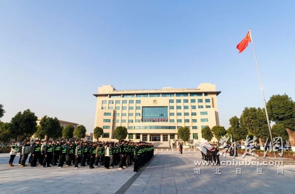 荆楚网(湖北日报网)消息(通讯员 陈超跃)12月25日,荆门市公安局高新区夺岛分局举行“夺岛治安队”成立暨升旗仪式。荆门高新区党工委副书记、夺道区委副书记、区委政法委书记张龙,区政府副区长、区公安局局长郑代平出席会议。分局及相关单位负责人出席会议,警队名义代表300余人参加活动。